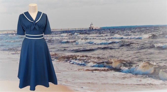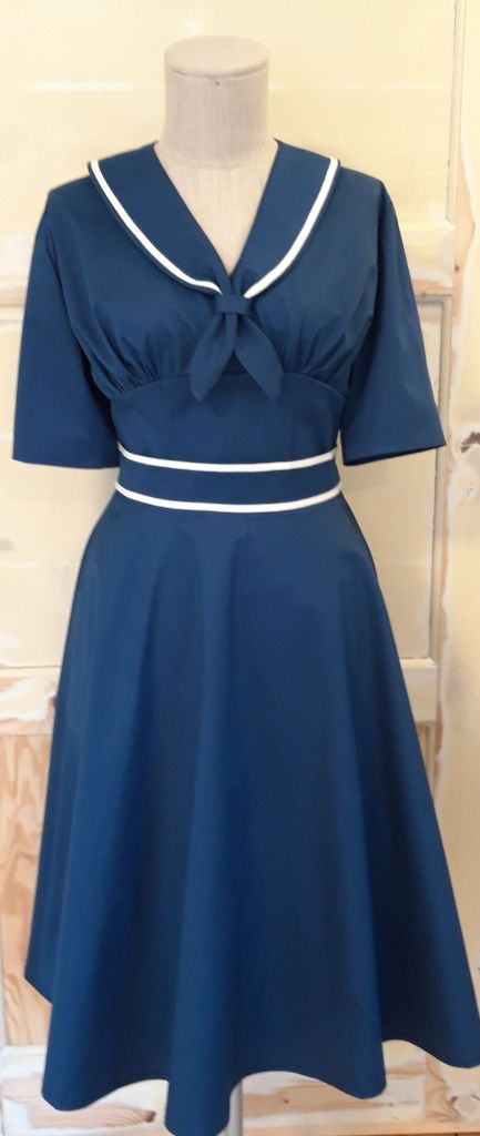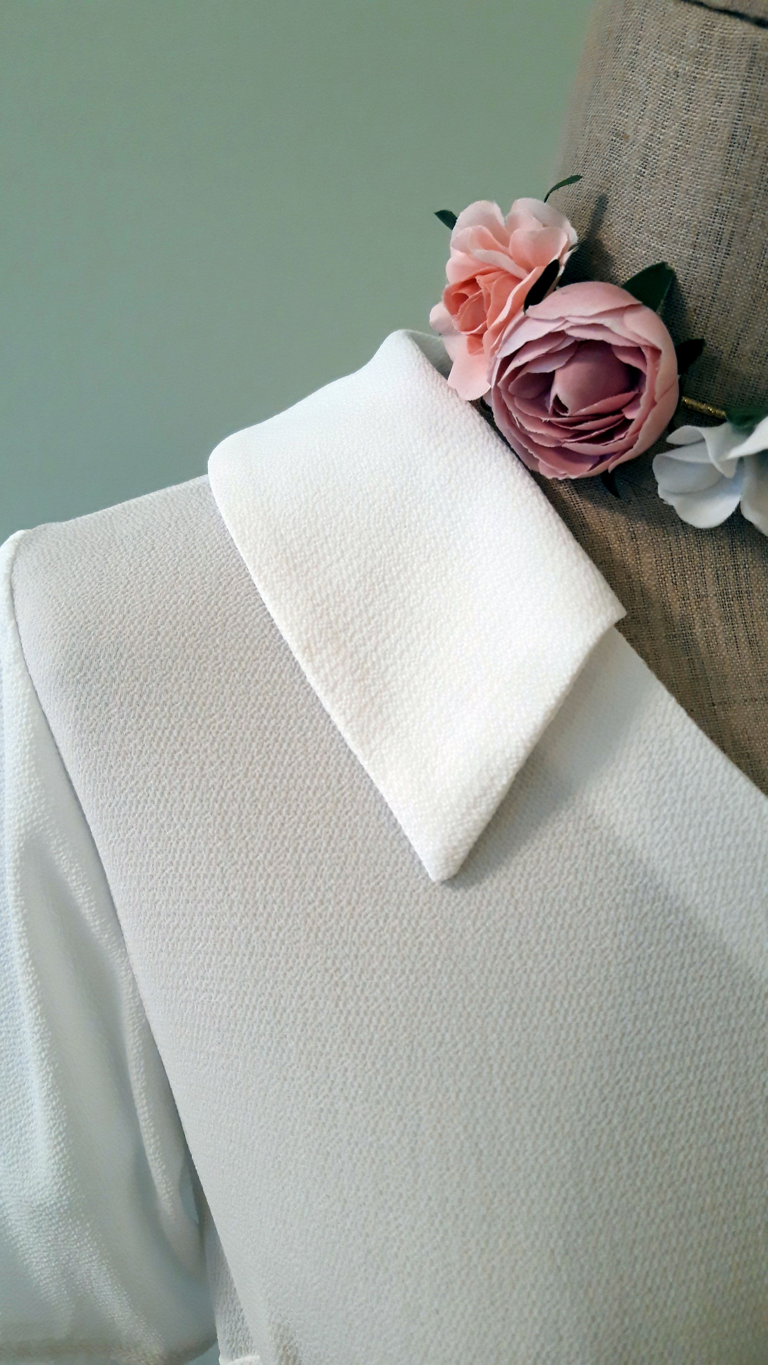 Das Kleid besteht aus Rock und Oberteil: beim Oberteil kann der Kragen auch abgenommen